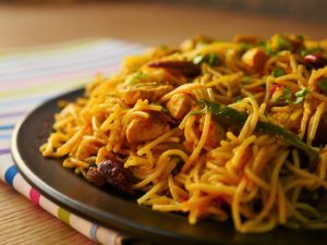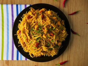 In pot,add oil and cut vermicelli pasta,mix well and fry until color changes.