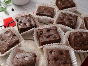 -On 9 x 9-inch greased baking pan lined with butter paper,pour brownie batter & tap few times.