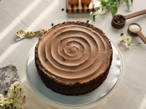 -Place 2nd layer of cake & spread prepared frosting on it,cover all sides of the cake with frosting & apply cake crumbs on the sides of the cake & refrigerate for 4 hours.
