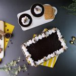 -Pipe out prepared coffee ganache on pudding layer & spread evenly.