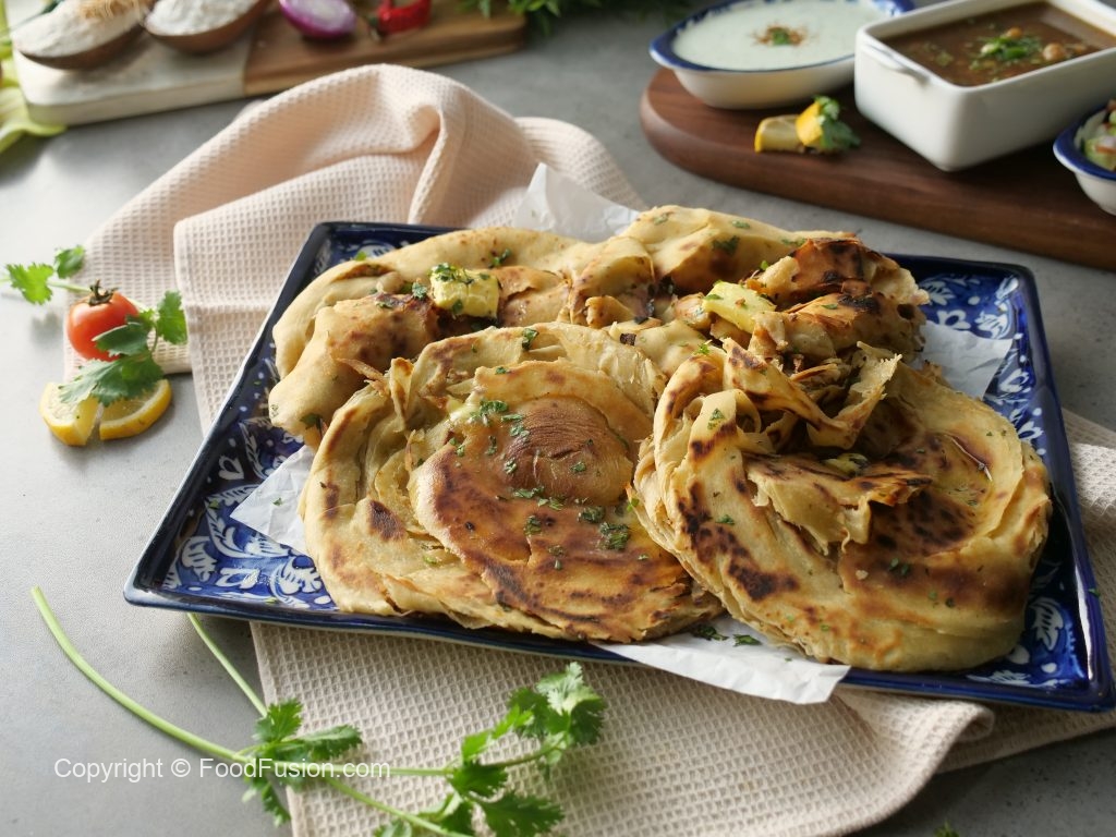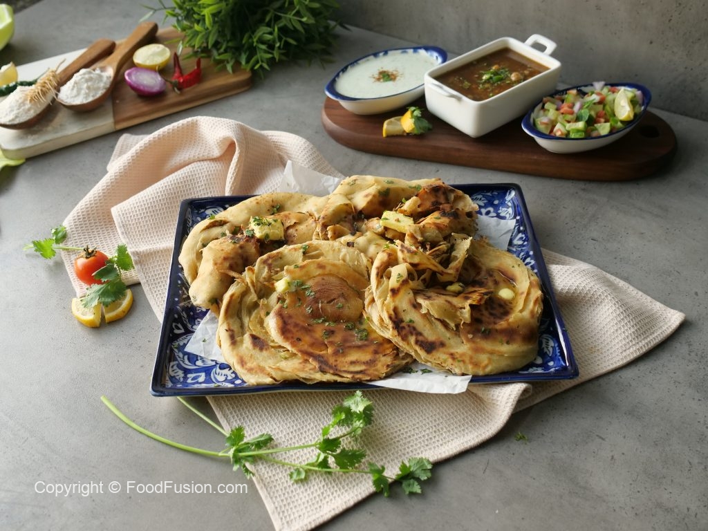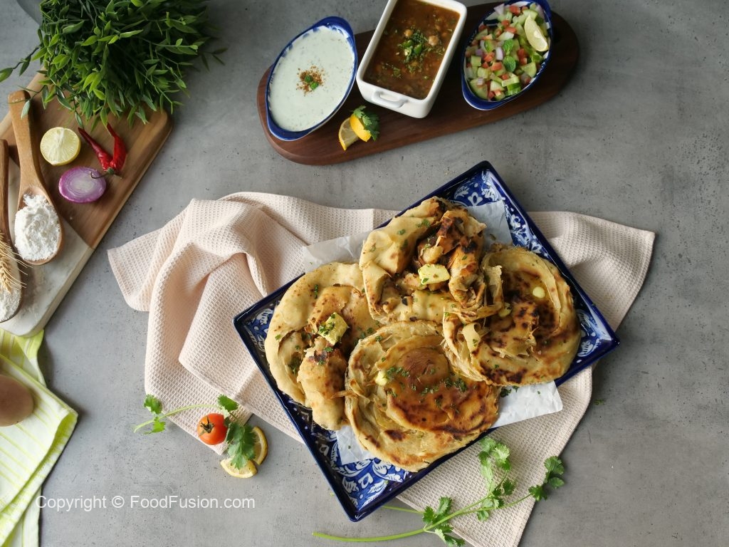 Makhan laga ker hara dhania chirak dein aur raita ka saath serve karein!