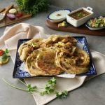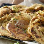 Apply butter and sprinkle fresh coriander & serve with raita!