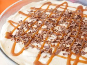 -Pour prepared white chocolate topping over it,remove excess & place the coated dome on churros disc.