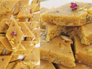 -Take a dome shaped silicone mold,fill each cavity with prepared rabri mixture,spread evenly & freeze for 4 to 6 hours in freezer.