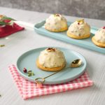 -Add pistachios,almonds,fold gently & transfer to a piping bag.