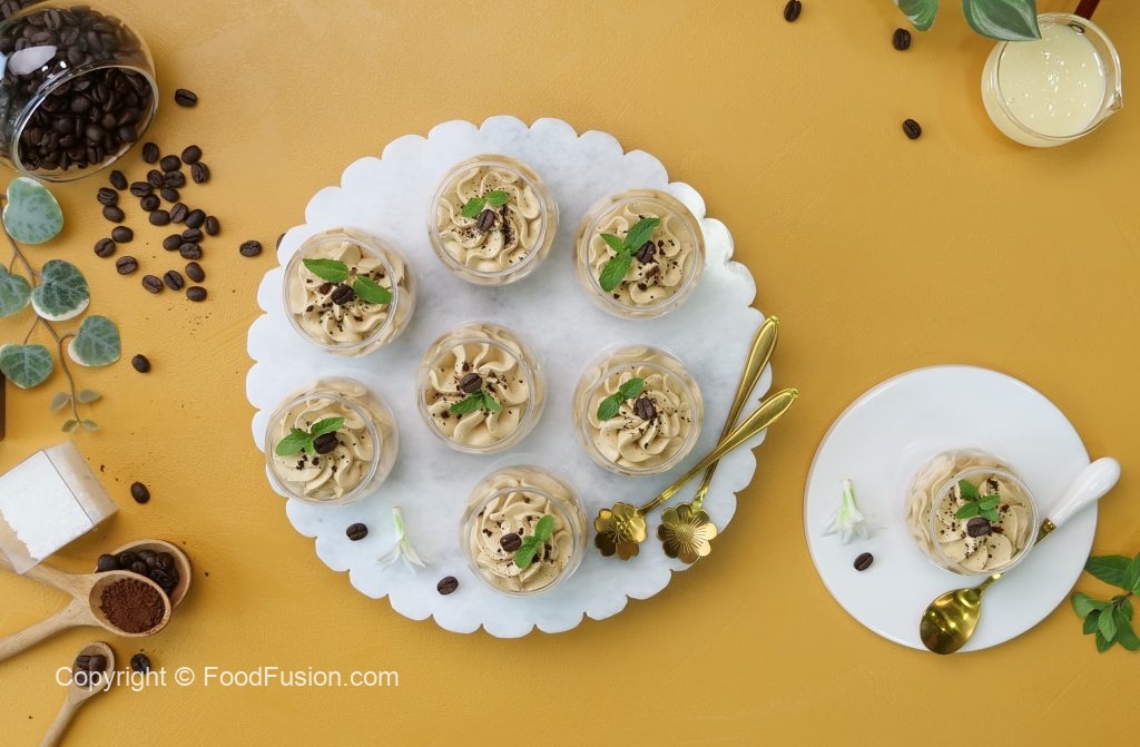 -Instant coffee sprinkle karein,coffee beans aur podina sa garnish ker ka thanda serve karein (makes 10-12 cups).
