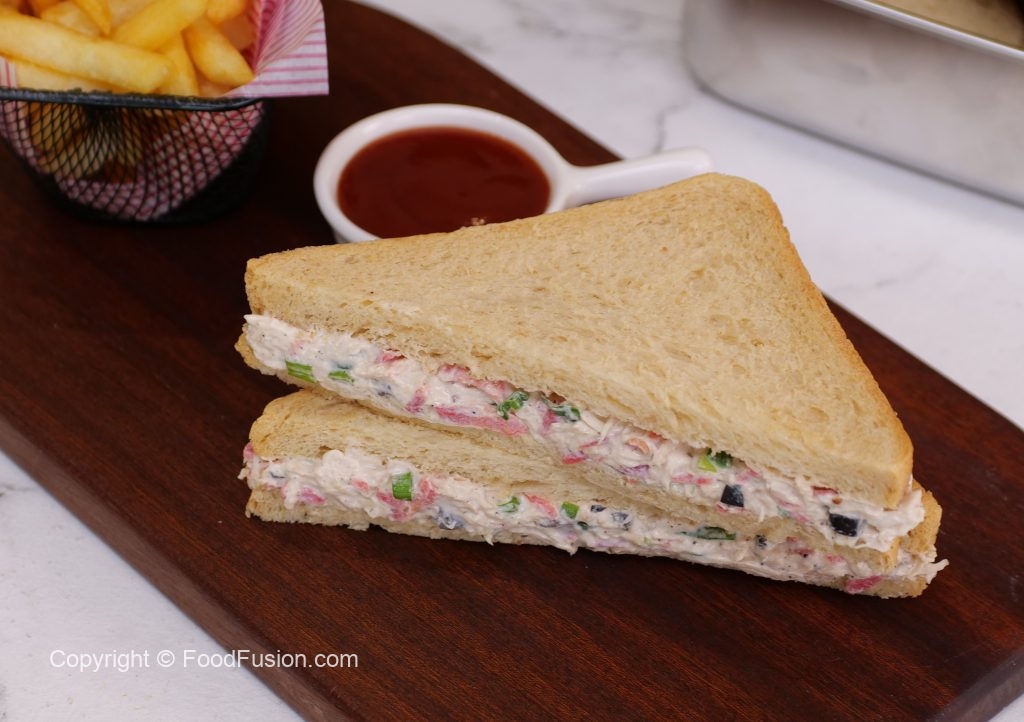 -Spread the prepared chicken mixture on bran bread slice,cut into triangles & serve with French fries or in a lunch box for kids (makes 8-10).