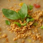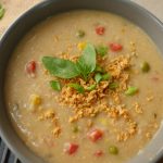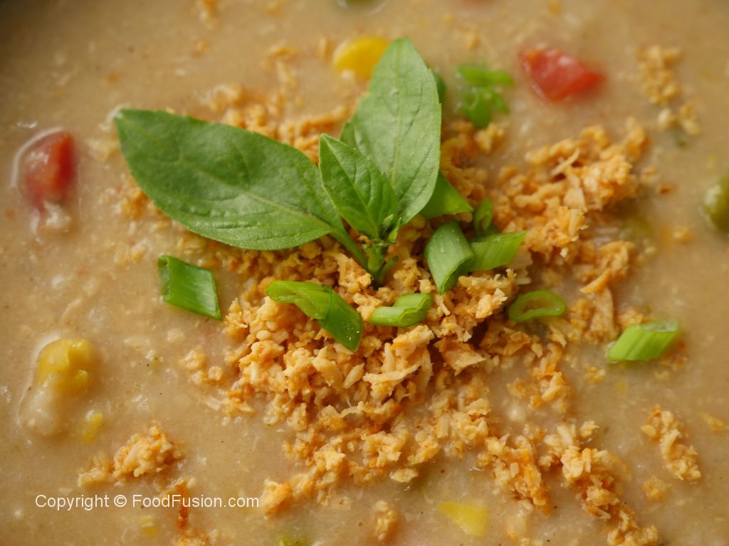 Hara pyaz aur basil leaves sa garnish ker ka serve karein.
