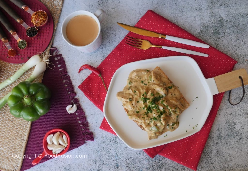 This mouth watering Creamy Garlic Chicken on toast is a must try recipe. Do give it a try. #HappyCookingToyou #OlpersDairyCream #FoodFusion