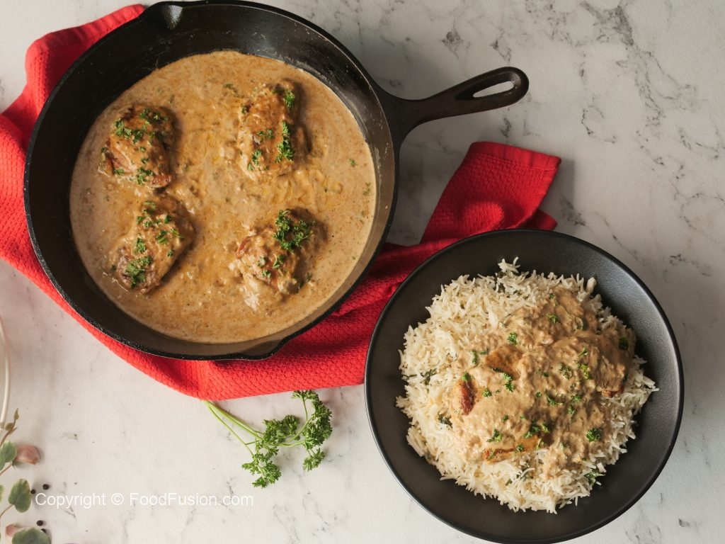 -Jug mein cream,yakhni,Dijon mustard,namak,kali mirch crushed,cayeen powder aur dried thyme dal ker ache tarhan whisk ker lein & side per rakh dein.