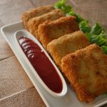 Now coat prepared box patties in all-purpose flour,dip into beaten eggs then coat in bread crumbs and again dip into beaten eggs then coat in bread crumbs.