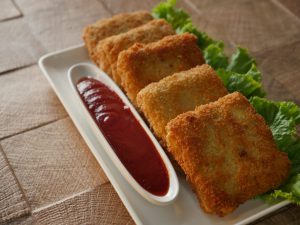 In frying pan,add oil and fry chicken fillets from both sides until done (4-5 minutes each side).