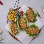-Flat bread per salad patta,crispy chicken slider & spicy mayo sauce dal ker serve karein (makes 4)!