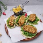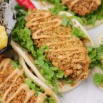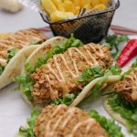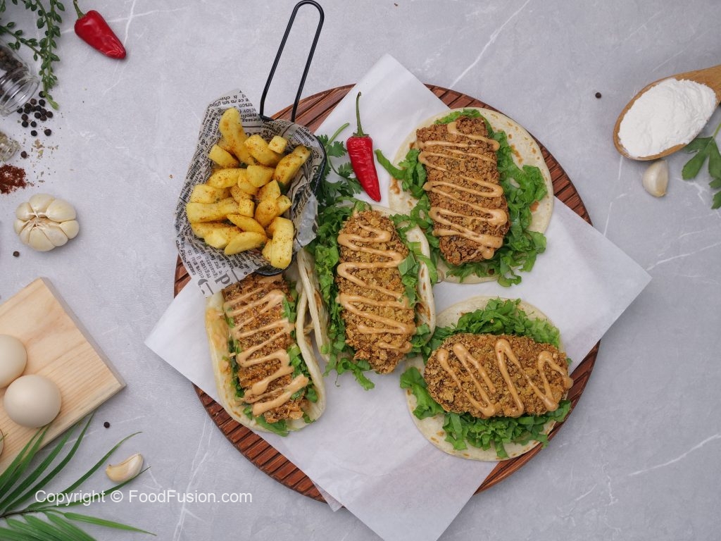 -On a flat bread,add lettuce leaves,crispy chicken slider,drizzle spicy mayo sauce & serve (makes 4)!