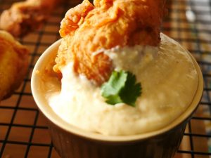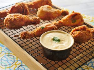 Drumsticks ko spicy potato sauce ka saath serve karein.