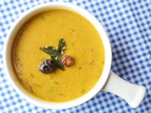 Mash lentils with masher,add tamarind pulp,tomato and mix well,cover & cook until tomato are soft (8-10 minutes).