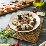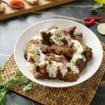 Tayyar yogurt sauce ko smokey dahi beef masala ka upper drizzle ker lein,hari mirch aur lal mirch crushed dal ker naan ka saath serve karein!