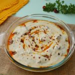 In serving dish,add prepared gravy,fried eggplants and prepared yogurt.