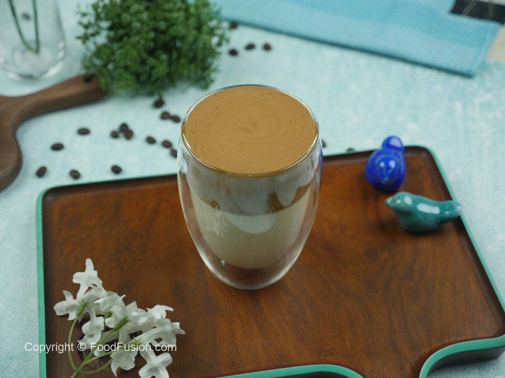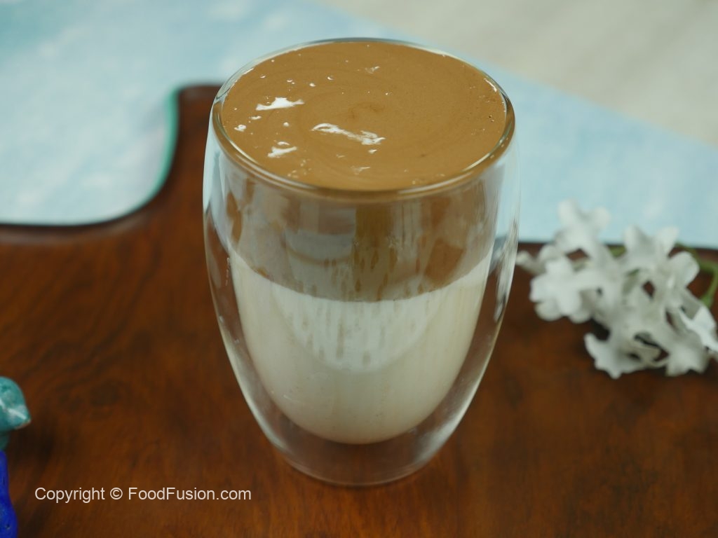 In serving glass, add milk,2-3 scoops of the mocha coffee mix on top & serve!