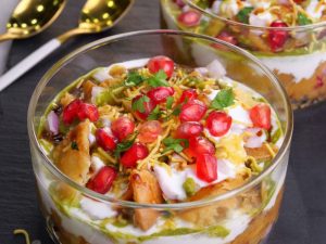 -Garnish with whisked yoghurt, pomegranate, daal sev, & serve!