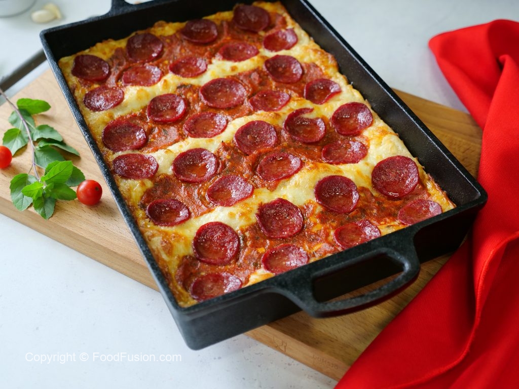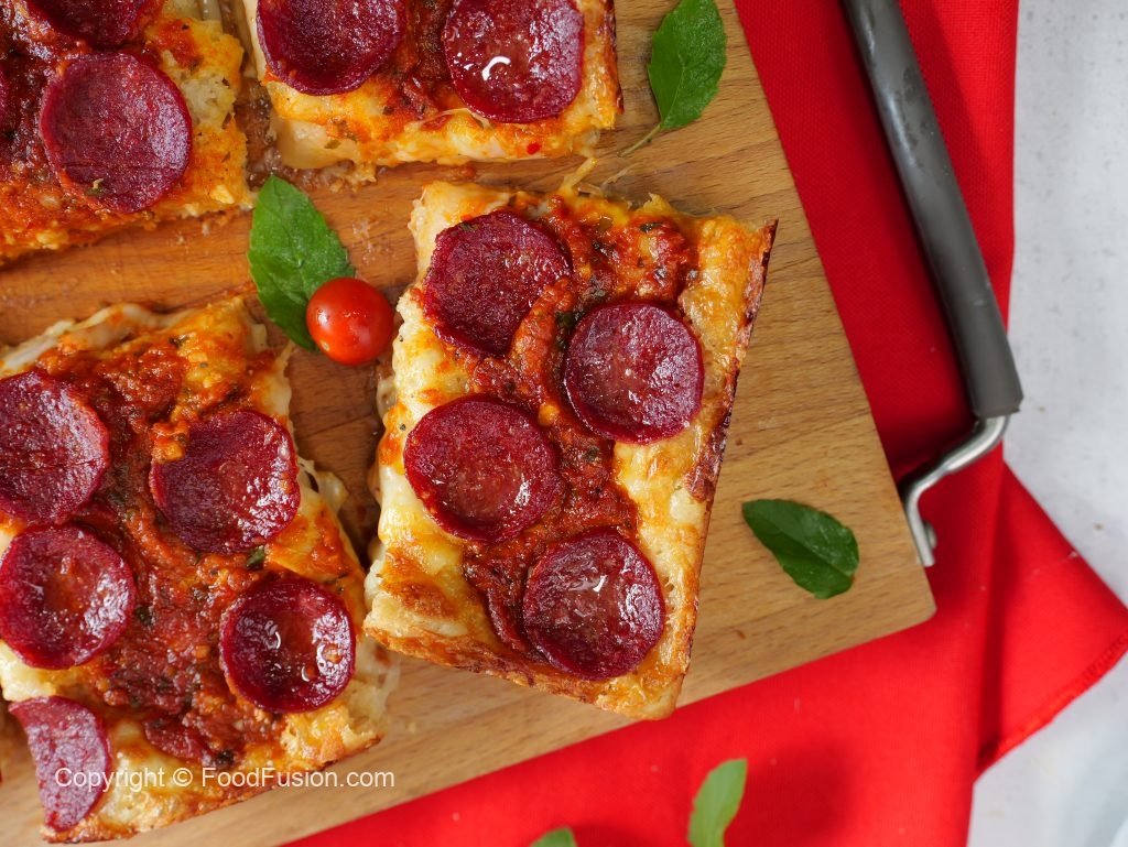 Indulge in the delicious flavors of this Detroit-style Pepperoni Pizza, loaded with gooey Olper’s Cheese and pepperoni. Try this recipe at home and experience the perfect blend of crunch and cheesy goodness! #OlpersCheese #1Glass1Slice #ToastKaNayaFriend #BreakfastKiJaan #FoodFusion #HappyCookingToYou #quickfoodrecipe
