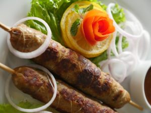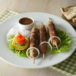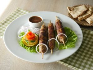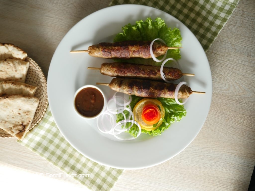 Haathon ko oil sa grease karein aur mixture ko la ker wooden & metal skewers per kebabs bana lein aur kitchen thread sa tie ker lein.
