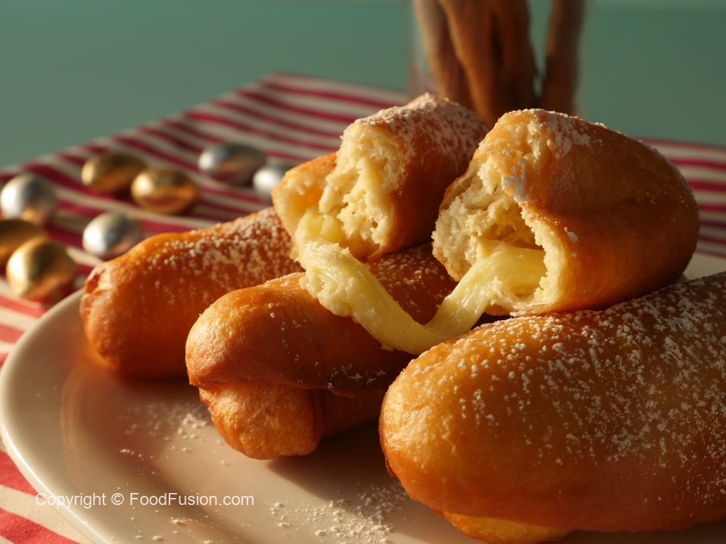 Mozzarella cheese stick aur cooking chocolate rakh dein aur roll ker ka edges ko seal ker lein (makes 15-16).