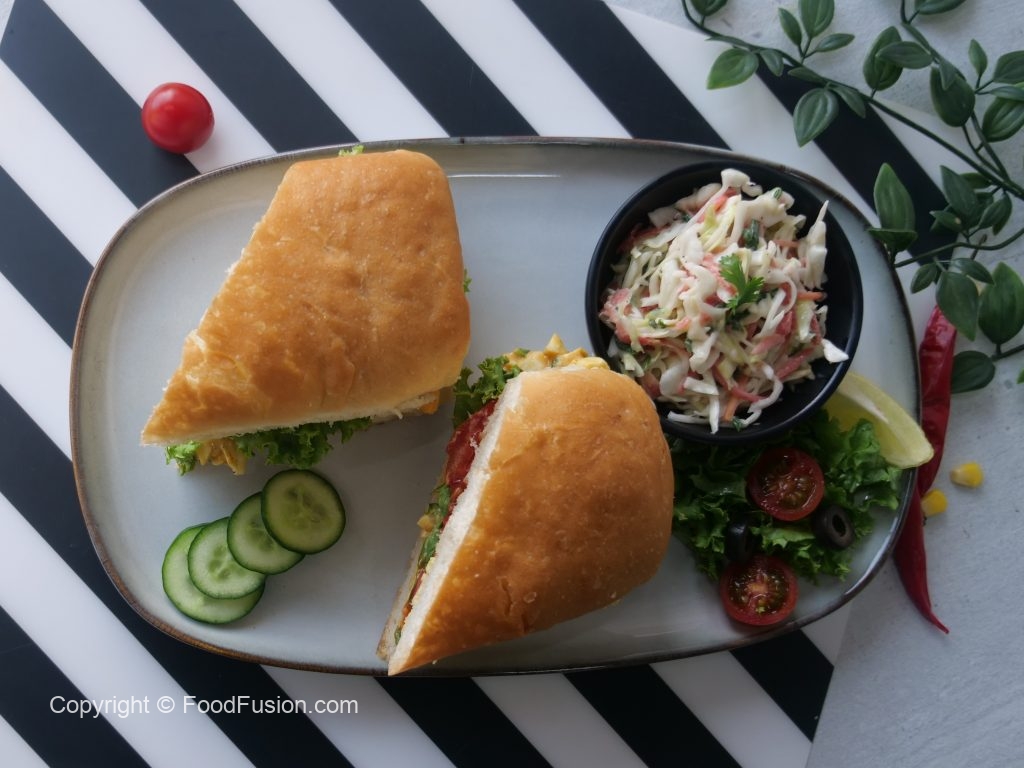 -Add & spread prepared filling,lettuce leaves,tomato slices,tomato ketchup & flip to make a sandwich (makes 2 sandwiches).