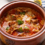 -Beef,adrak lehsan paste aur pink salt dal dien aur rang tabdeel ho janay tak ache tarhan mix karein aur 6-8 minutes kliya darmiyani ancch per paka lein.
