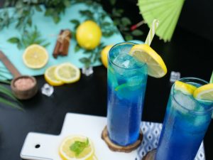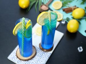 -Serving glass mein ice cubes,lemon slices,7up & tayyar blue curacao syrup (2 tbs) dal ker ache tarhan stir ker lein.