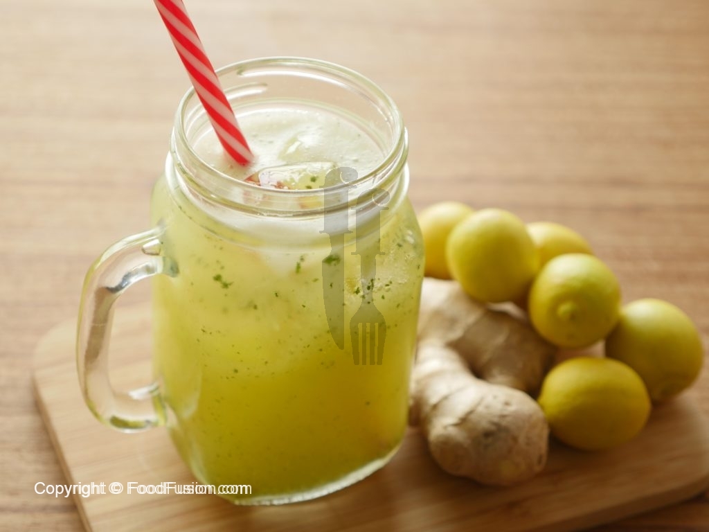 Blender mein podina,cheeni,adrak lemon juice,kala namak aur pani dal ker ache tarhan blend ker lein.