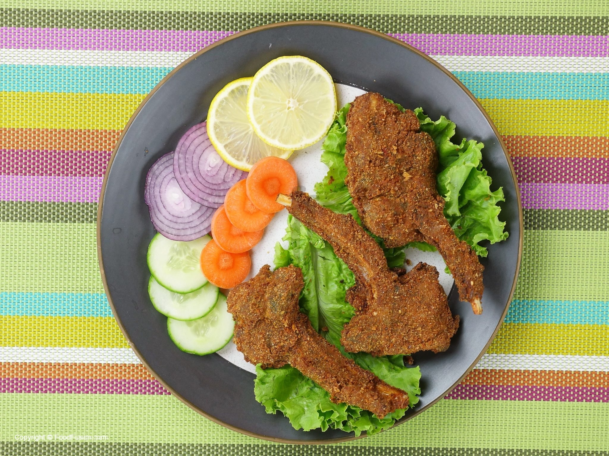 Coat well the chops with crumbs and deep fry on medium heat till golden brown.