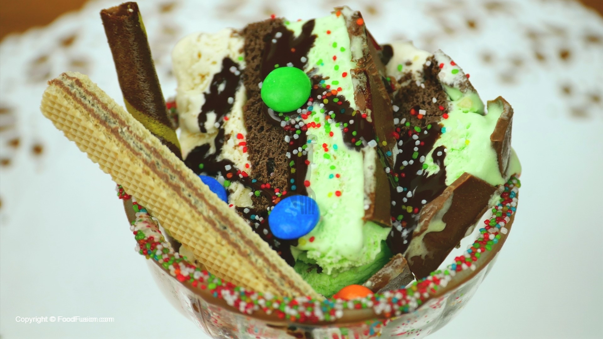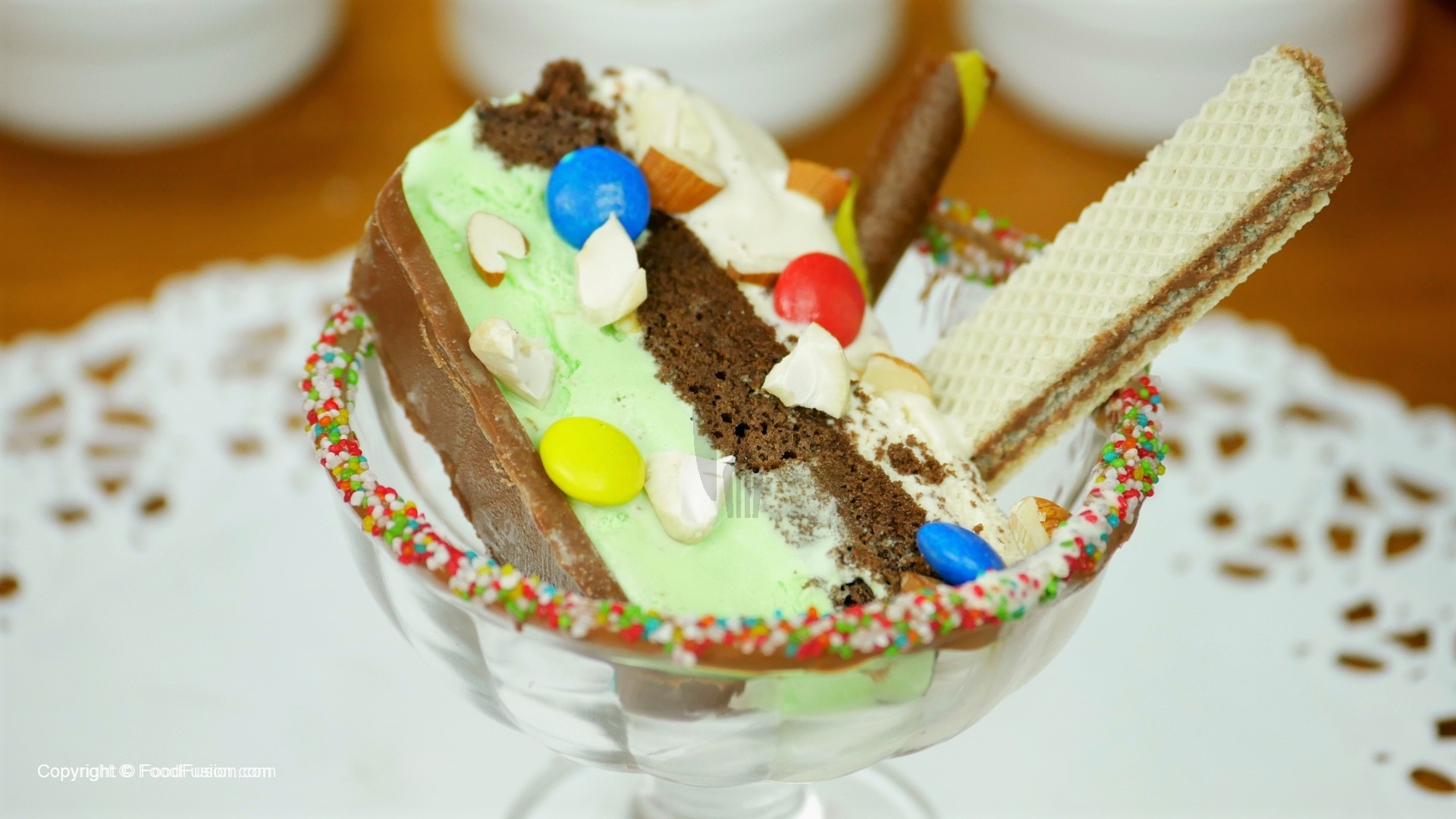 Nuts,bunties,chocolate chips,rainbow sprikles dal ker serve karein.