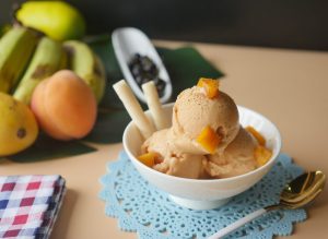 Blneder mein frozen mangoes,hanged yogurt,shahad aur vanilla essence dal ker smooth hunay tak ache tarhan blend ker lein.