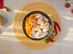 -Take them out & squeeze gently to remove excess water & add in prepared creamy sweet yogurt.