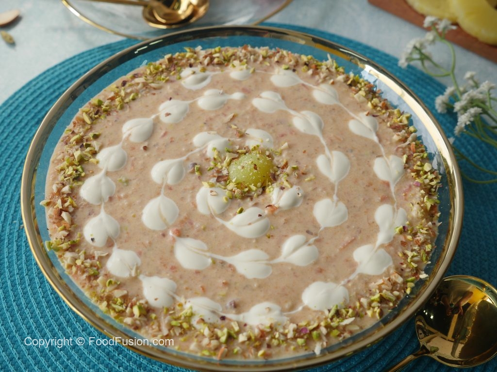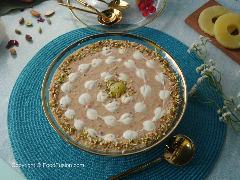 Add pineapple chunks,chum chum mithai & give it a good mix.
