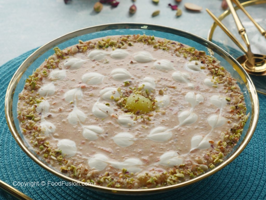 Garnish with cream,almonds & pistachios.