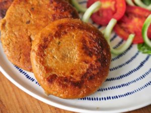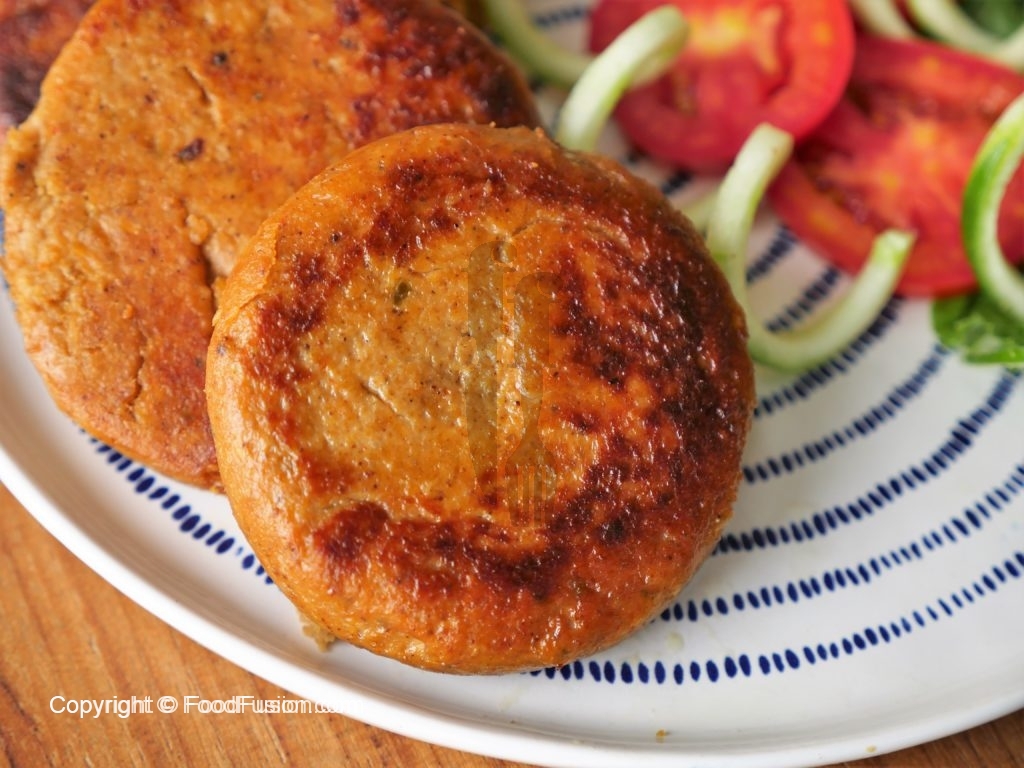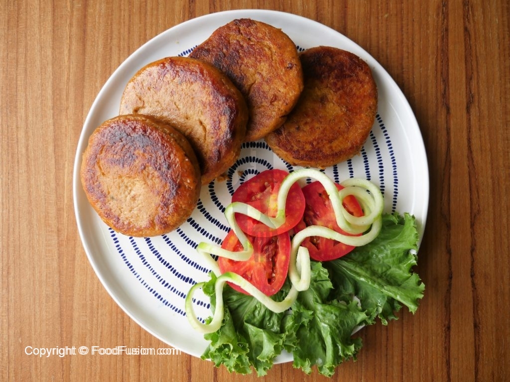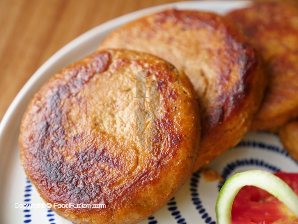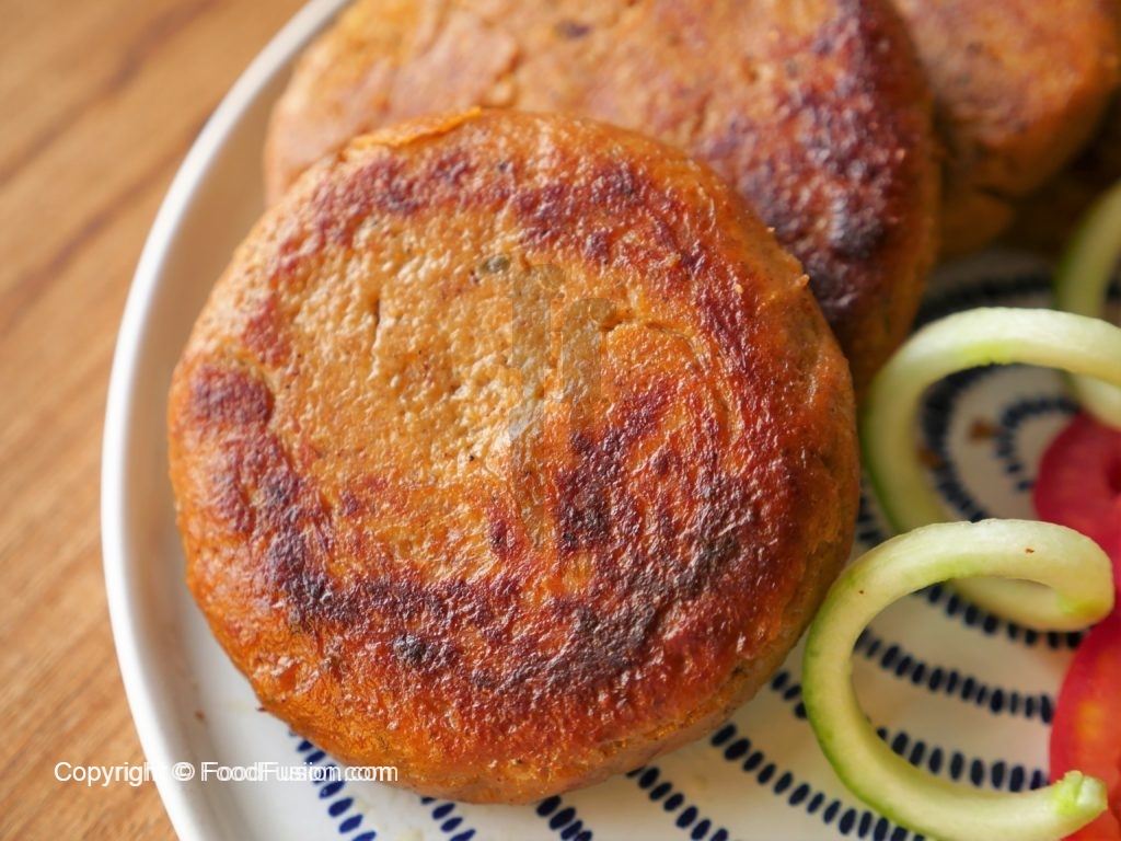 Grease your hands with oil,take a mixture and make a kebabs/patties of equal sizes (makes: 14-15 Kebabs).