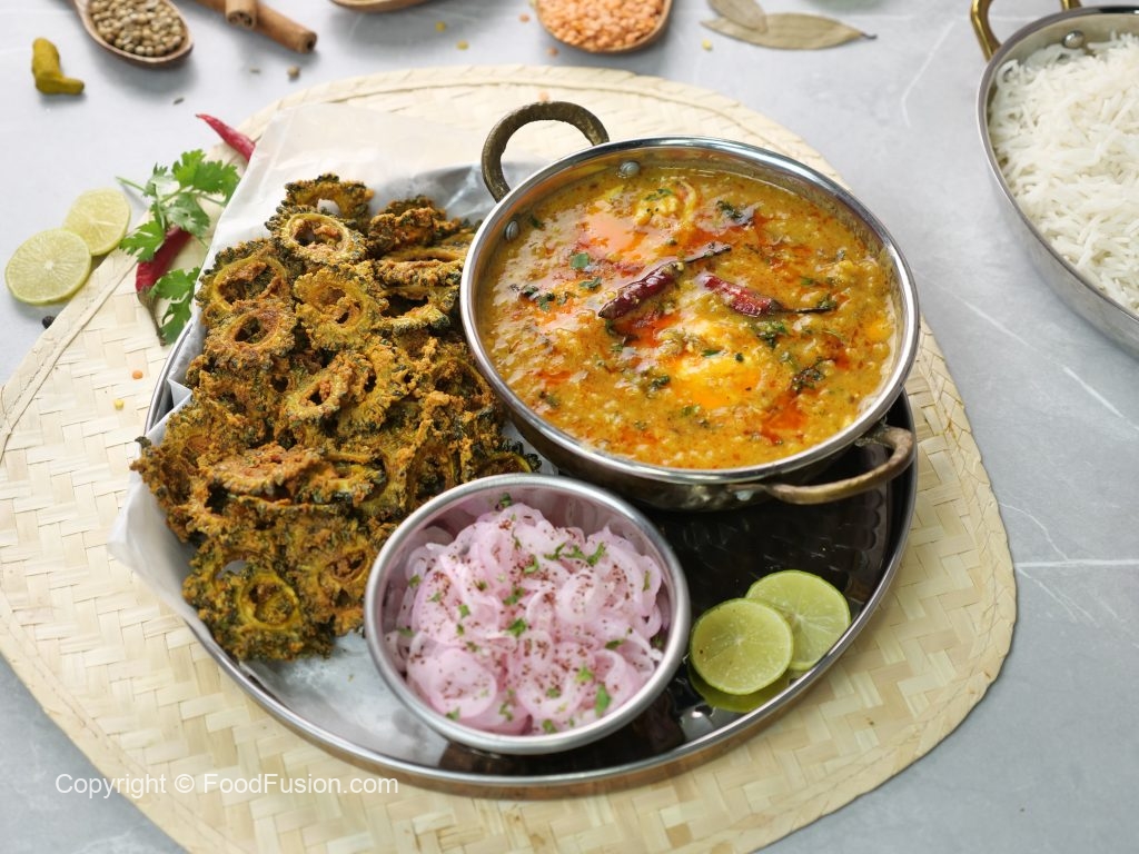 Golden daal served up with a crunch! Dive into the hearty goodness of this daal platter, paired with crispy karelay ke chips for that perfect bite. #happycookingtoyou #foodfusion #araywahh