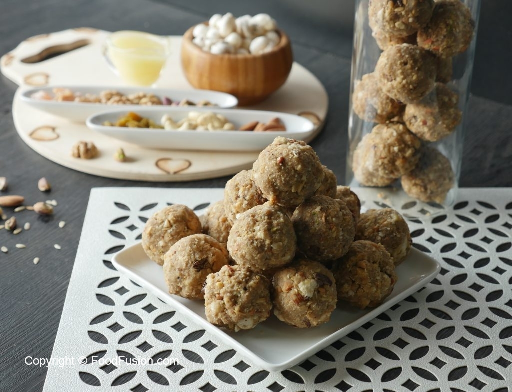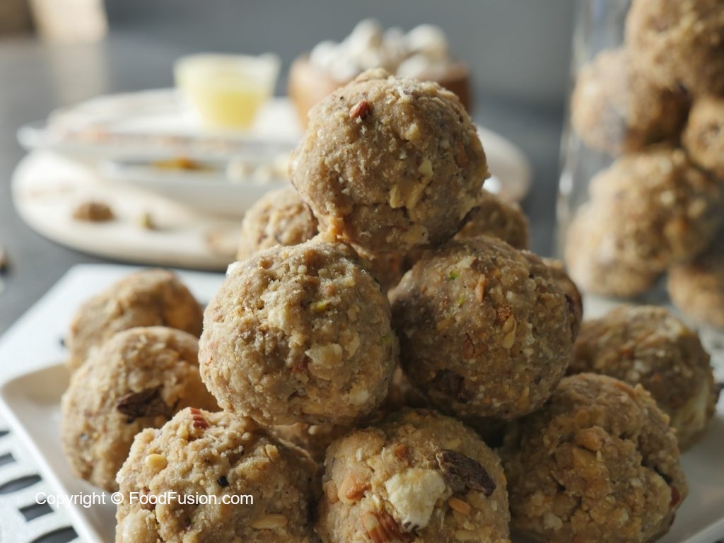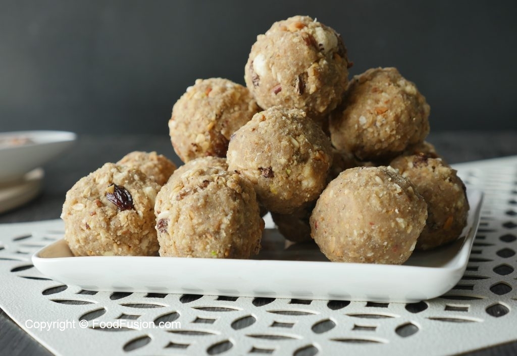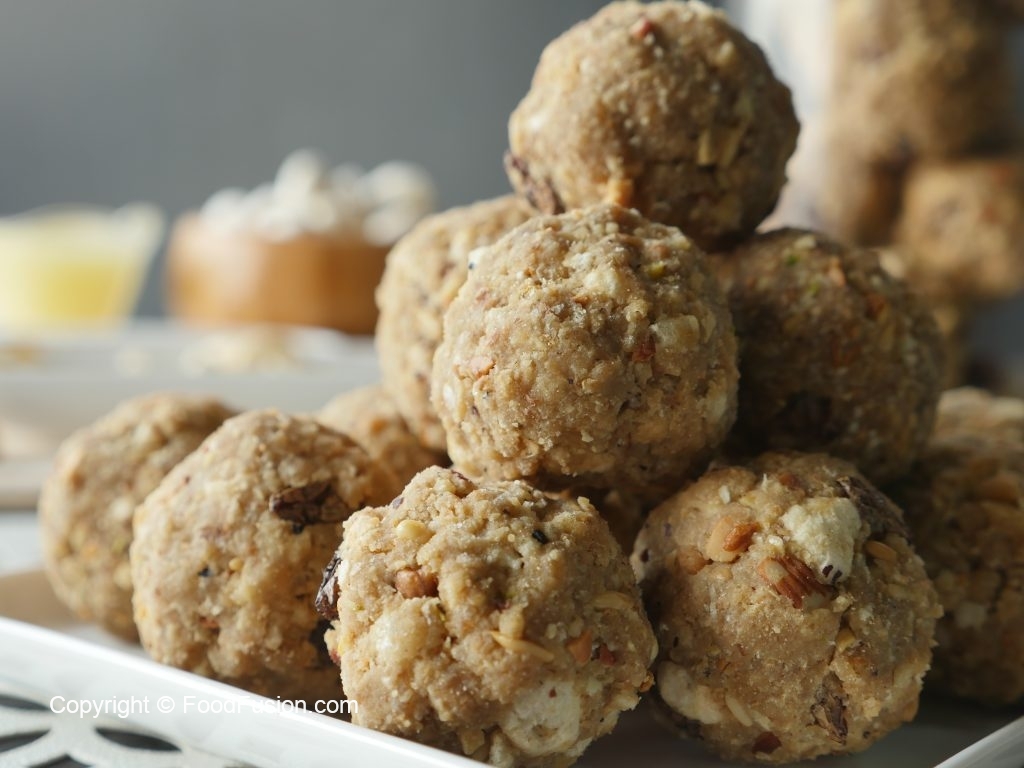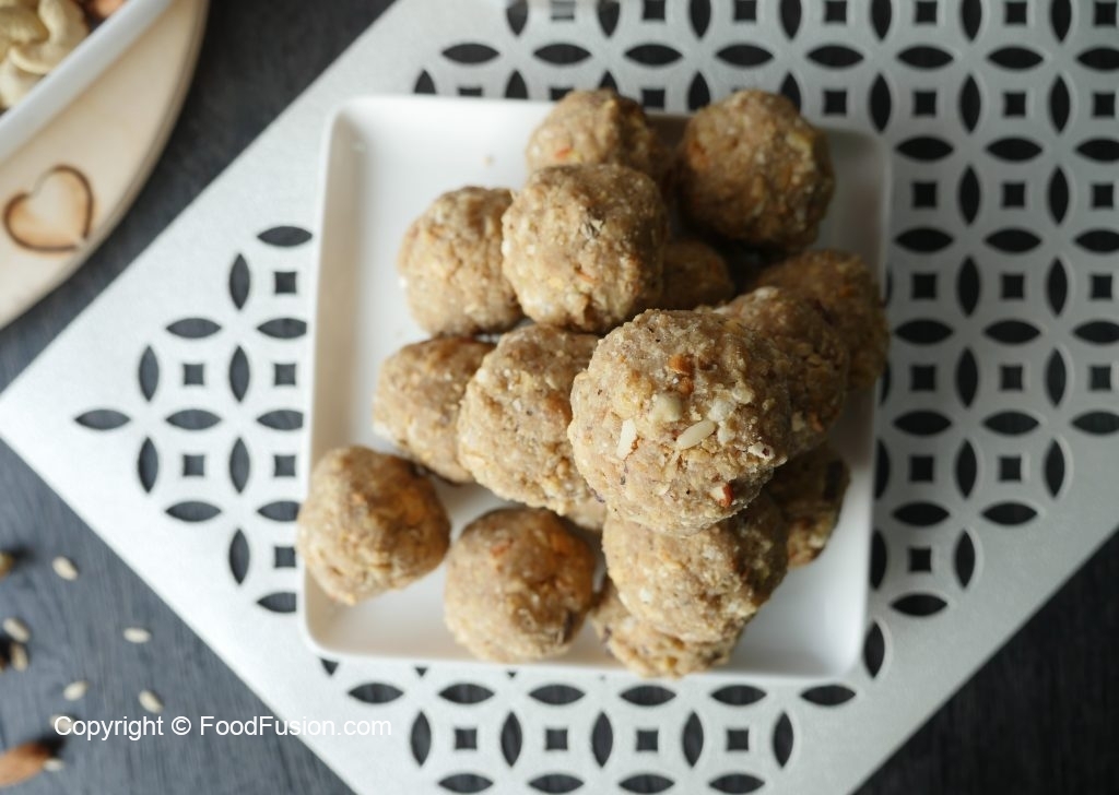Take a mixture (50g) and makes laddu of equal sizes (makes 31-32).