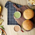 Serve with potato fries,prepared chatpati hari chutney & bbq burger sauce!