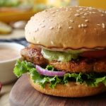 On burger bun,add & spread bbq burger sauce,lettuce leaves,onion rings,chicken chapli kabab,tomato slice and prepared chatpati hari chutney.