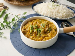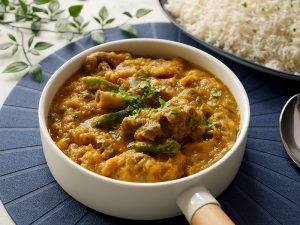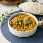Hara dhania dal dein aur chawal ka saath serve karein.