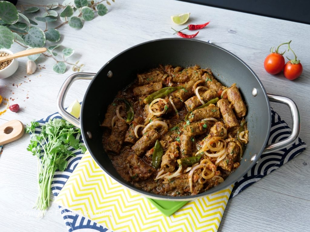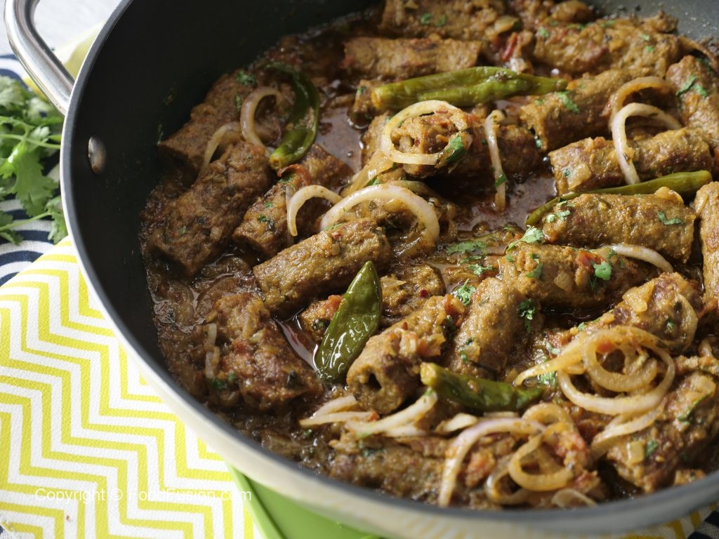In a wok,add cooking oil,seekh kabab & fry on medium flame until golden brown (4-5 minutes) & set aside.