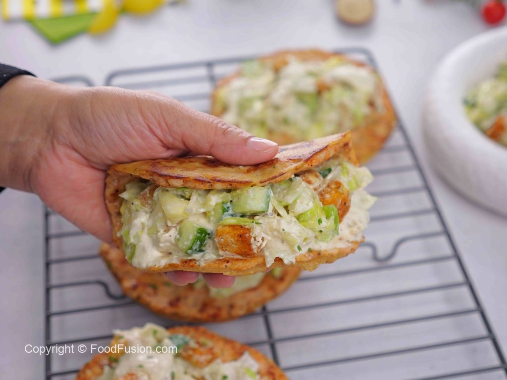 -On a small size tortilla, spread marinated chicken mince nicely & set aside. (Makes: 4-5)