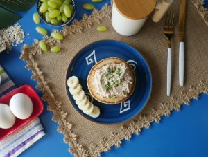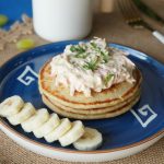 Serve oats pancakes with yogurt & vegetable sauce and garnish with fresh coriander!