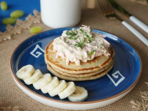 Grease frying pan with olive oil,add ¼ cup of prepared pancake batter,cover & cook on low flame for 2 minutes then flip and cook for another 2 minutes or until golden brown (makes 8).