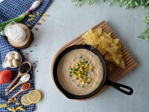 Garnish with corn kernels,green onion leaves & can be used or served with appetizers,nachos,crackers, snack items & pita (toasted).