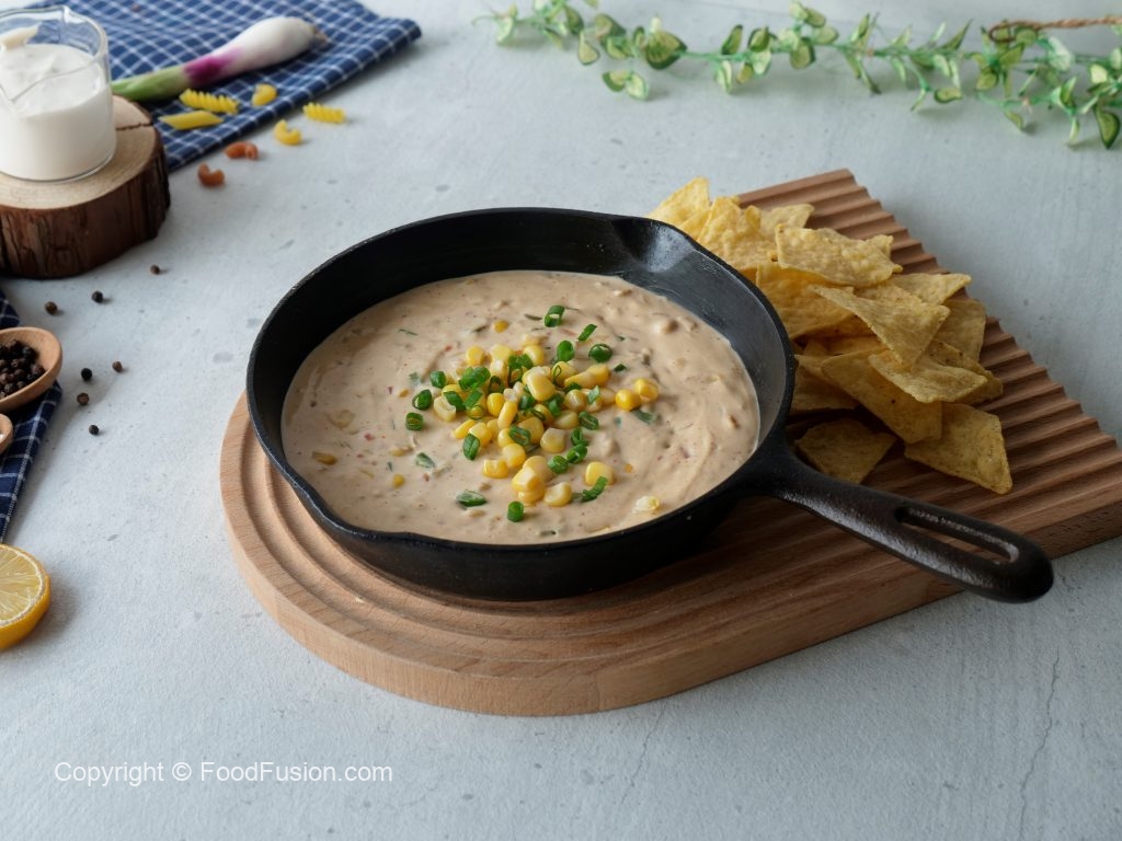 Corn kernels aur hara pyaz leaves sa garnish ker lein aur appetizers,nachos,crackers, snack items & pita (toasted) ka saath serve karein.