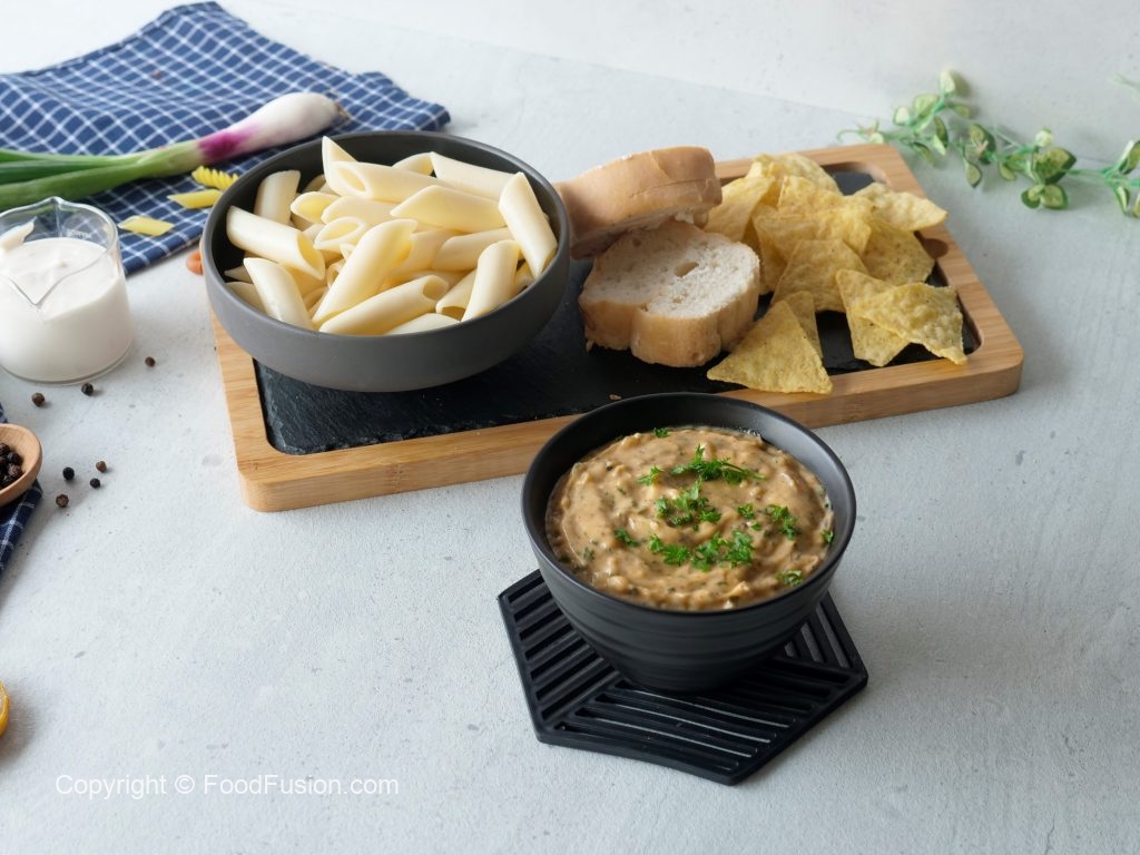 Fresh parsley sa garnish ker lein,fries,garlic bread,nachos/crackers & pasta ka saath serve karein.